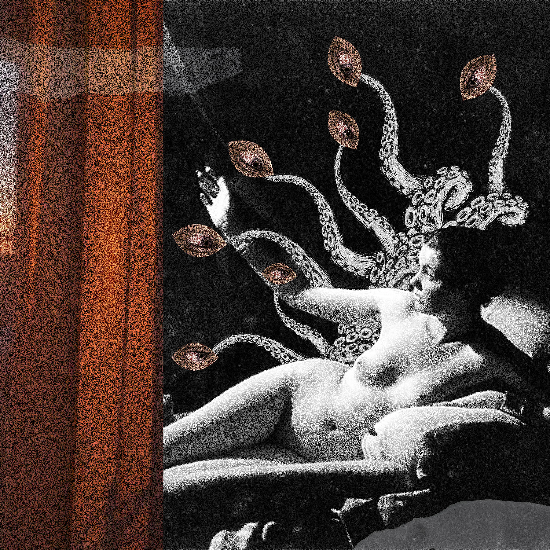The collages develop through an intuitive process of dragging, stacking, and rearranging elements until the image holds a specific emotional charge. Nothing is smoothed over; the seams, glitches, and abrupt transitions stay visible. These interruptions are part of the structure, reflecting how identity is shaped by conflicting signals—internal doubt, external judgment, and the constant awareness of being watched.